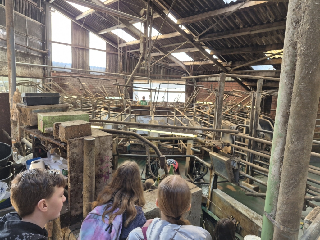 Bauer Stefan Jordans führte die Gruppe persönlich über den Hof und erklärte anschaulich die täglichen Arbeitsabläufe. Besonders beeindruckend war das sogenannte Melkkarussell, bei dem die Kühe automatisch gemolken werden – ein zentrales Element der heutigen Milchwirtschaft.