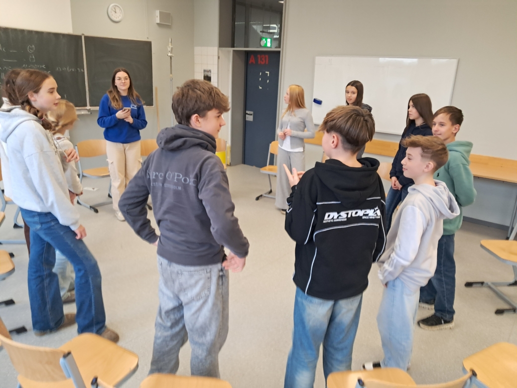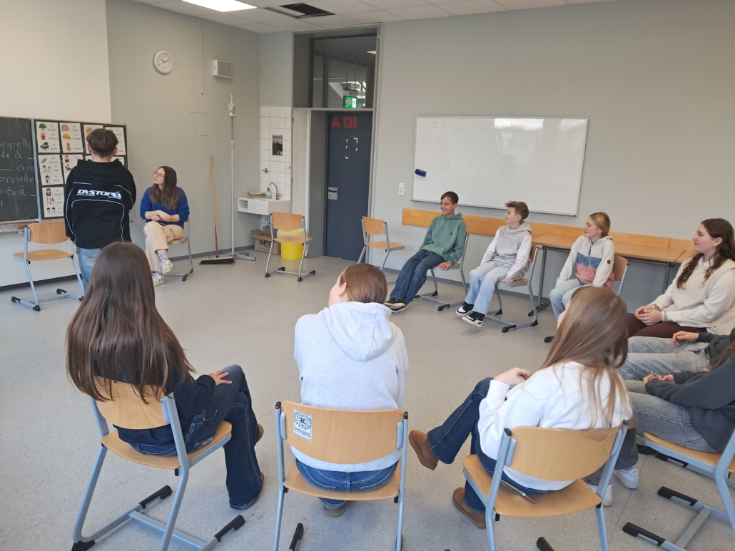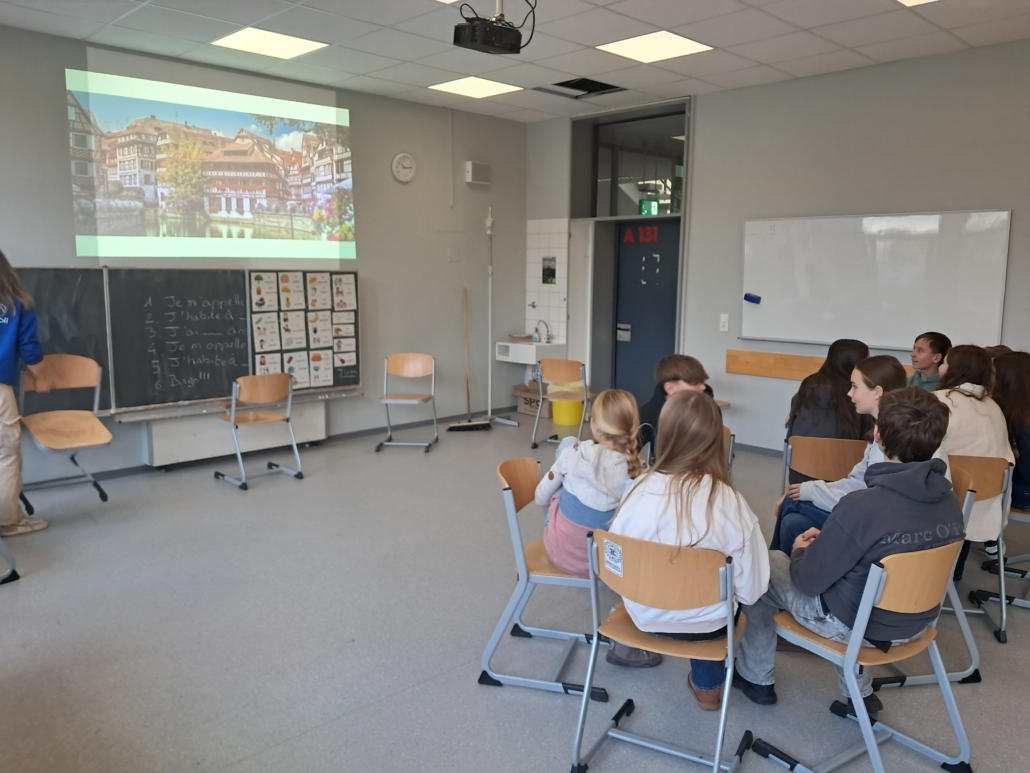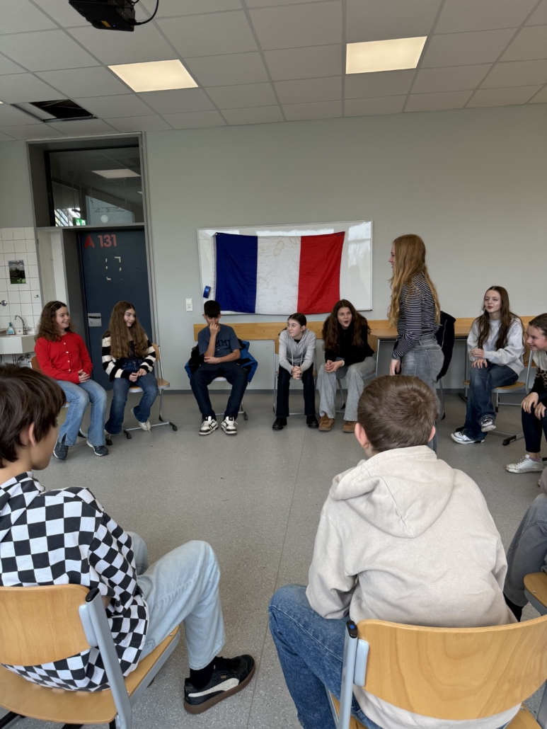 Eine Freiheitsstatue in Frankreich? Wolkenkratzer in Paris? Nicht nur das lernten unsere Französischlernenden der Klasse 7 in dieser interaktiven Unterrichtseinheit dazu – und dazu noch ganz auf Französisch. Am Donnerstag, den 11.12.25, durften wir die Französin Sarah Kroner vom FranceMobil am Gymnasium Voerde begrüßen. Mit viel Bewegung, spielerischen Aktivitäten und aktueller französischer Musik im Gepäck brachte sie unseren SchülerInnen die französische Sprache näher.