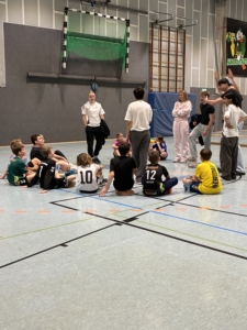 Viele Schülerinnen und Schüler sind außerhalb der Schule in einem Fußballverein oder spielen einfach nur hobbymäßig Fußball. Sie meinten auch, dass es ihnen sehr viel Spaß macht, da sie immer gern sportlich aktiv sind. Sie haben neben Fußball auch andere sportliche Aktivitäten betrieben wie Badminton oder Hühnerleiter und vieles mehr. Im Projekt waren auch die Junior Coaches tätig, die auf die Kinder aufgepasst haben und dieses Projekt geleitet haben.
