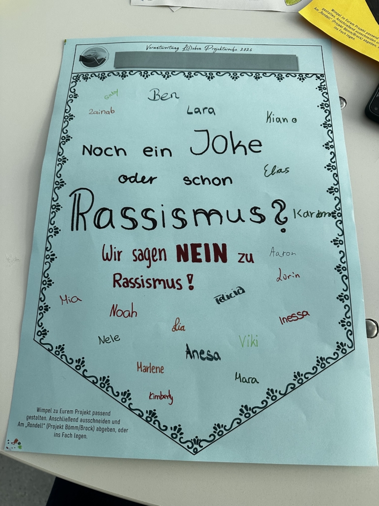Im Rahmen der Projektwoche am Gymnasium Voerde haben wir das Projekt „Noch ein Joke oder schon Rassismus?“ besucht. In dem Projekt geht es darum, ein besseres Verständnis für Alltagsrassismus zu bekommen. Um dieses Ziel zu erreichen, schlüpfen die Schülerinnen und Schüler in verschiedene Rollen und setzen sich mit unterschiedlichen Aussagen auseinander, zu denen sie Stellung beziehen. Zudem unterhalten sie sich darüber, wie sie in verschiedenen Situationen handeln, ohne andere zu verletzen.